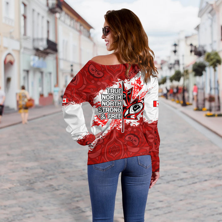 Canada Off Shoulder Sweatshirt Haida Indigenous Maple Pride