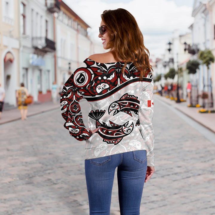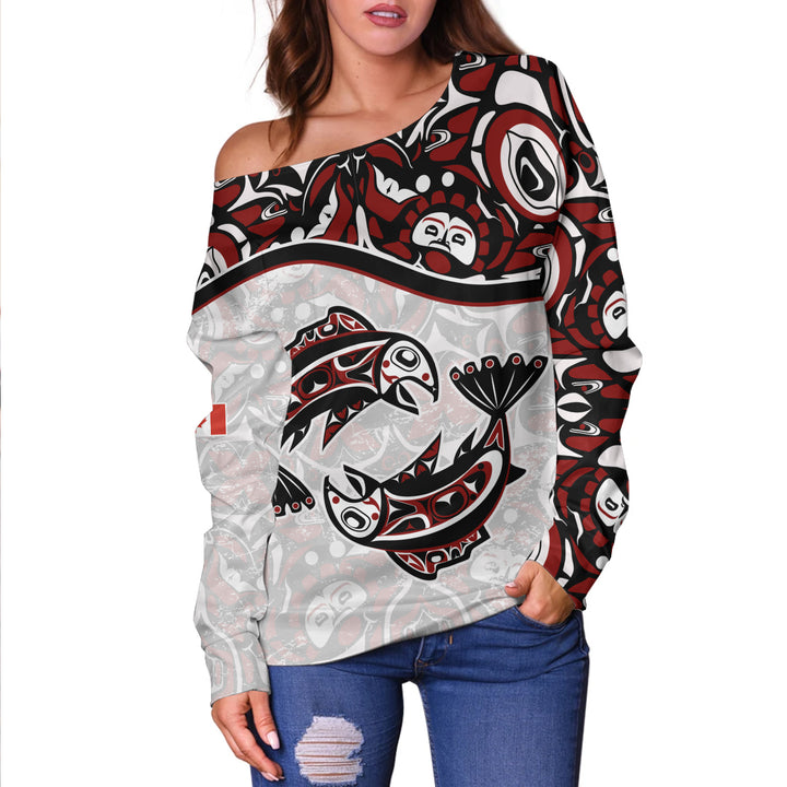 Canada Off Shoulder Sweatshirt Haida Ocean Strength