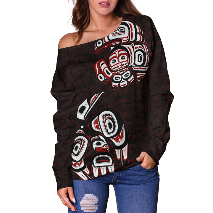 Canada Off Shoulder Sweatshirt Haida Red Raven Rise