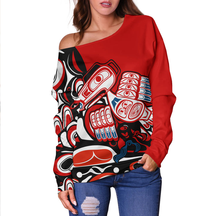 Canada Off Shoulder Sweatshirt Haida Red Totem Legacy
