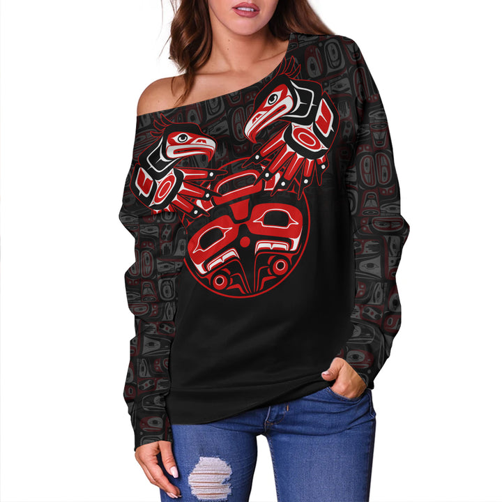 Canada Off Shoulder Sweatshirt Haida Twin Ravens