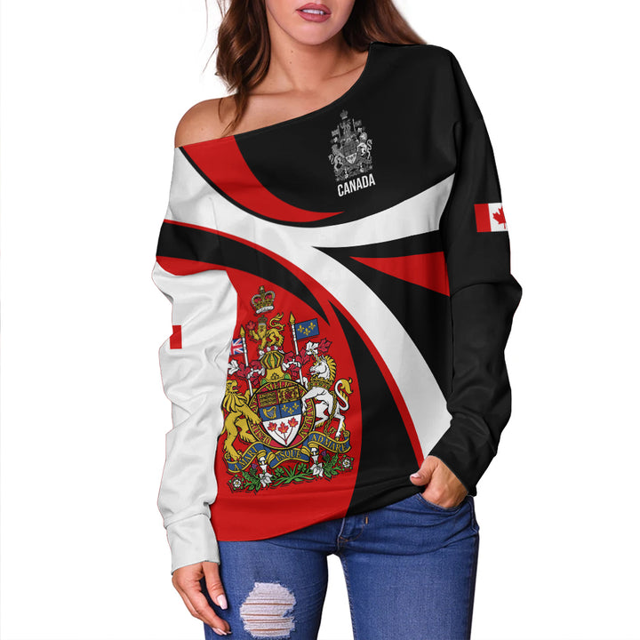 Canada Off Shoulder Sweatshirt Heritage Pride And Power Crest
