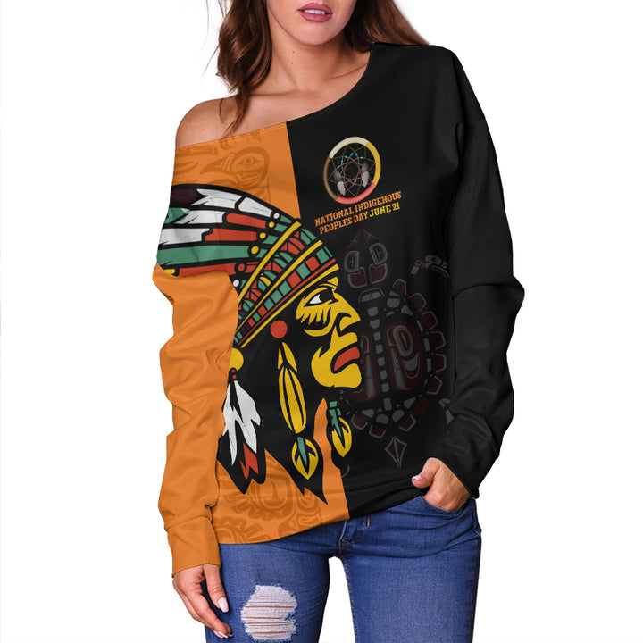 Canada Off Shoulder Sweatshirt Indigenous Honor June 21 Edition