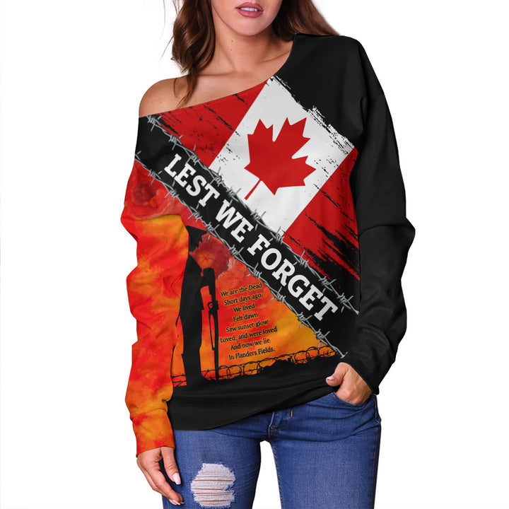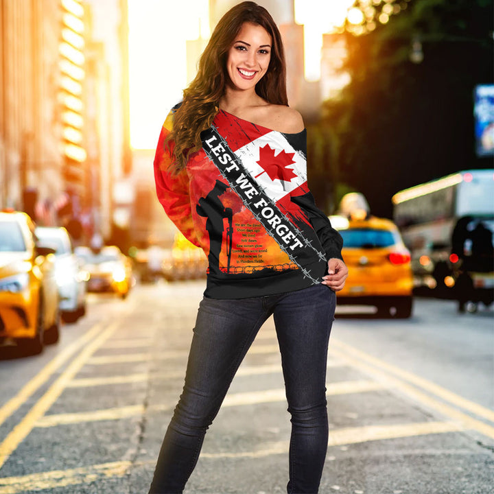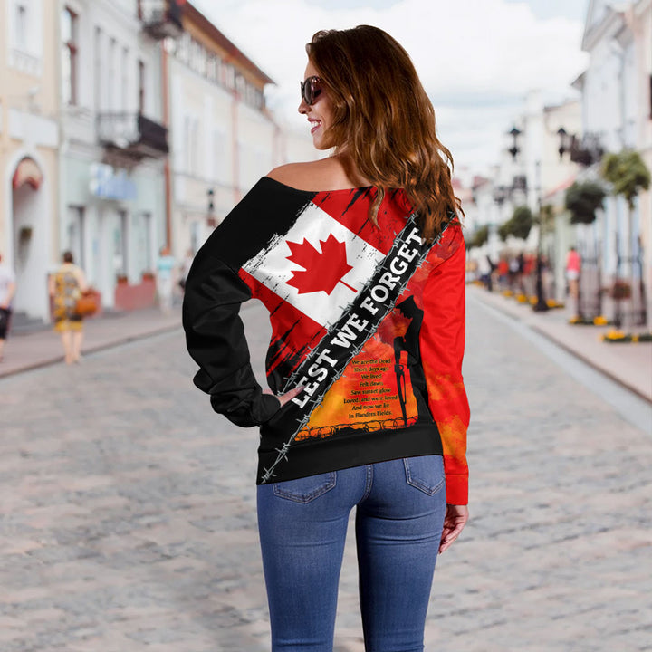 Canada Off Shoulder Sweatshirt Lest We Forget Canada Remembrance Day Poppy Pride