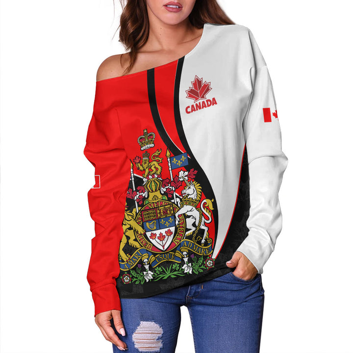 Canada Off Shoulder Sweatshirt Maple Crown Crest With National Pride