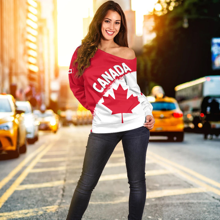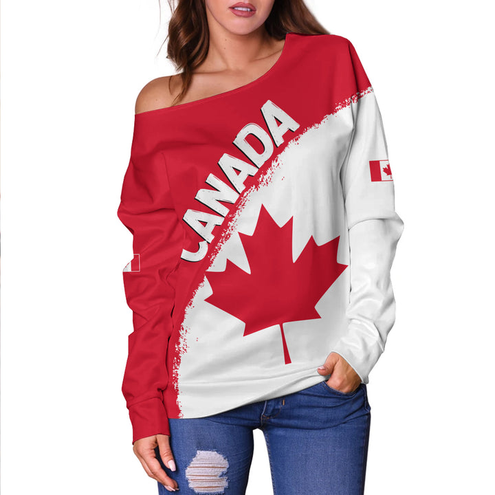 Canada Off Shoulder Sweatshirt Maple Wave True North Spirit
