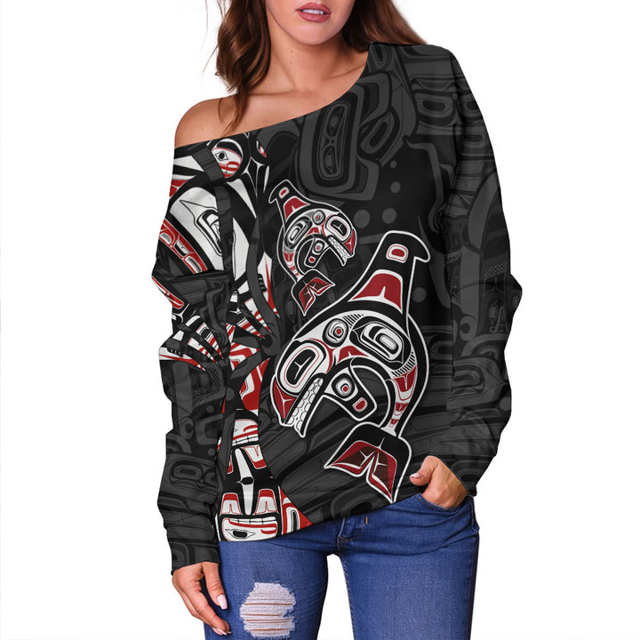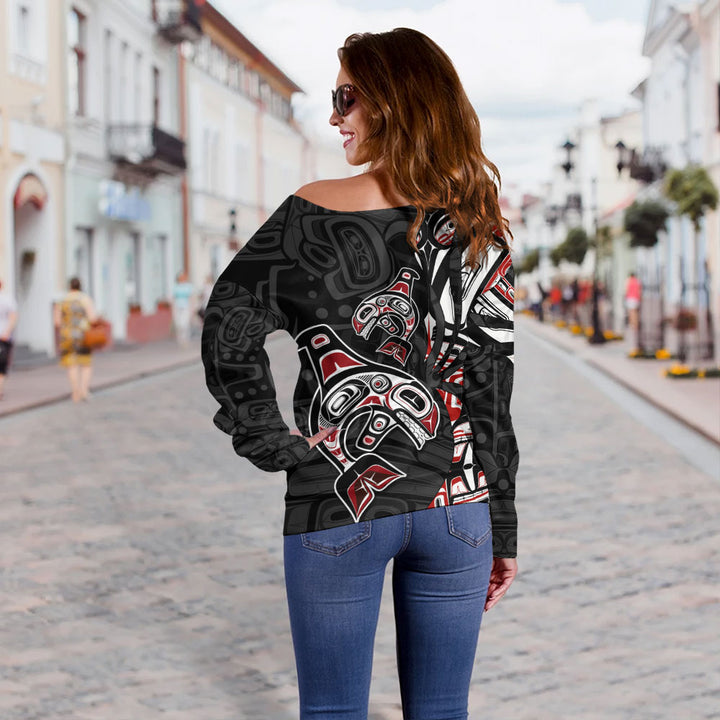 Canada Off Shoulder Sweatshirt Orca Spirit Of The Northwest