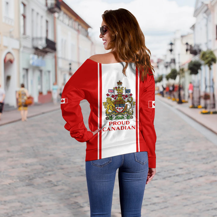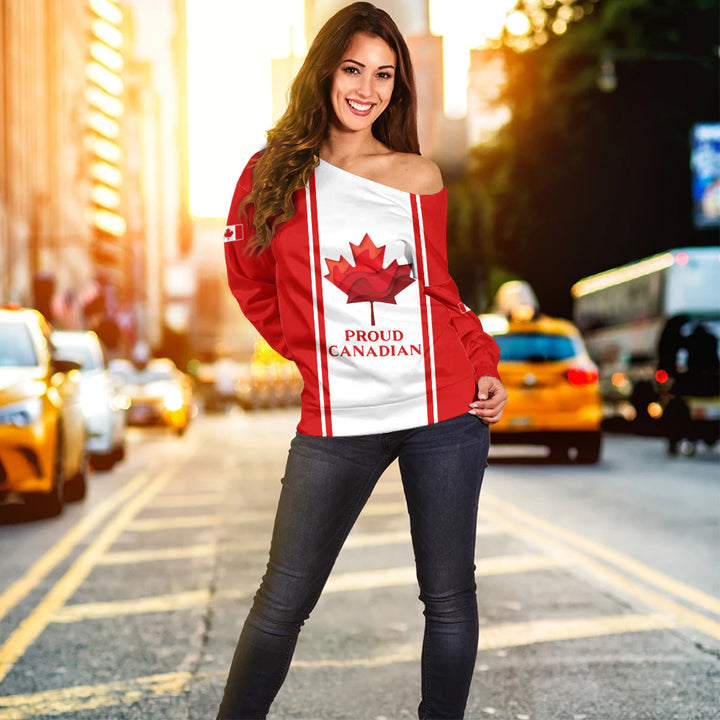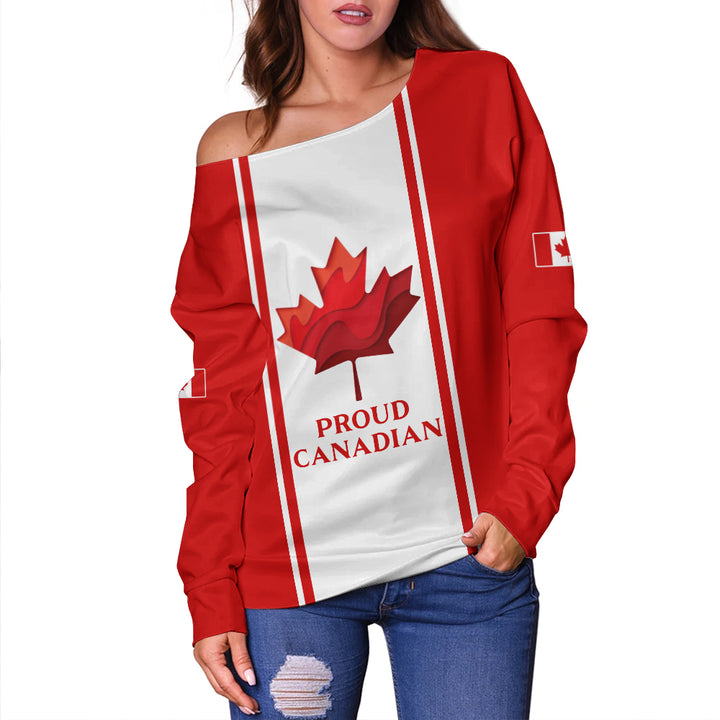Canada Off Shoulder Sweatshirt Proud Canadian Vertical Maple Flag Edition