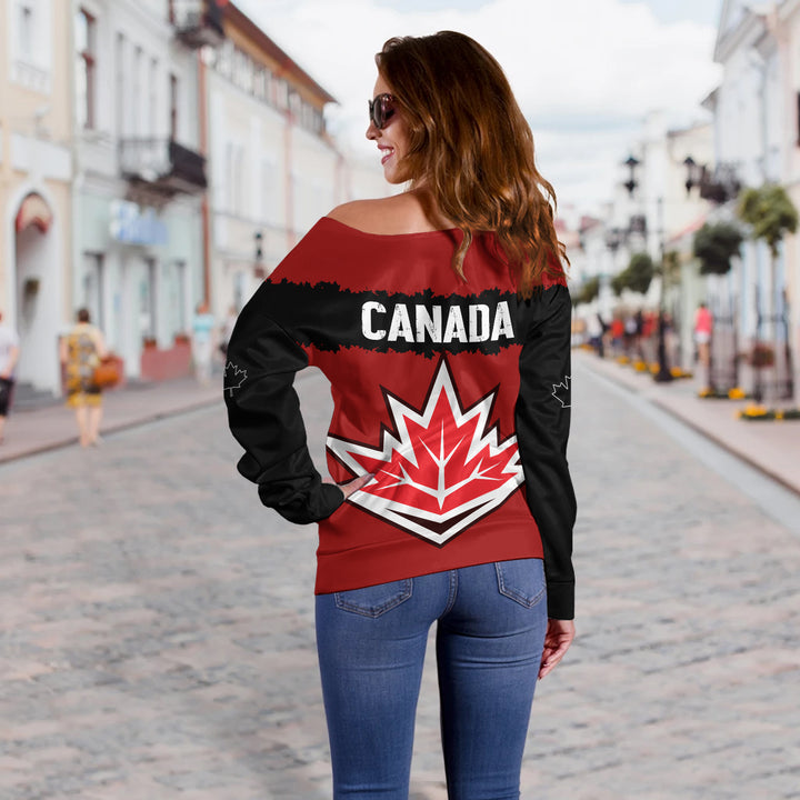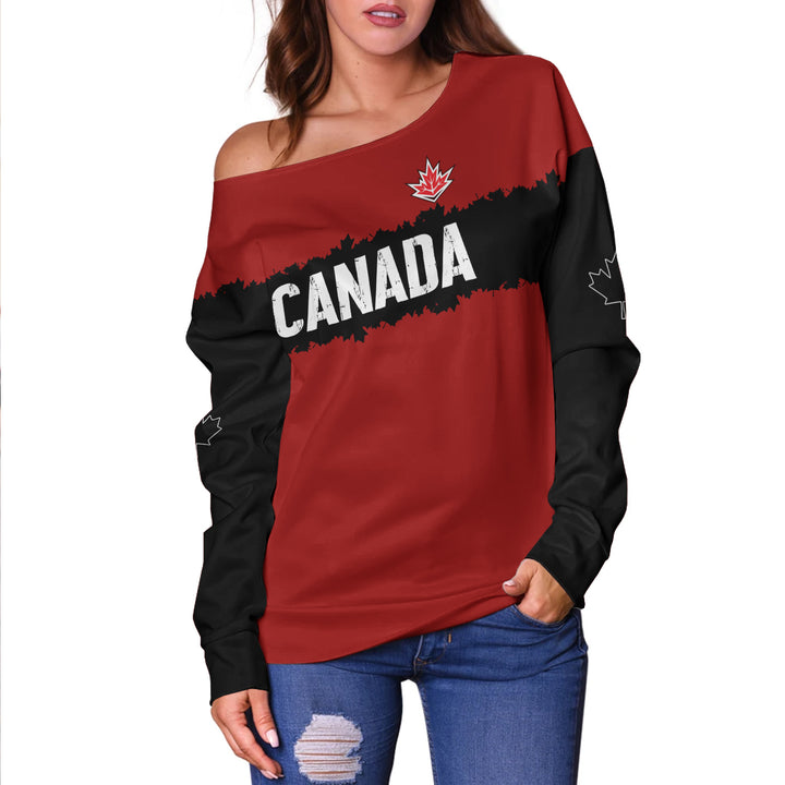 Canada Off Shoulder Sweatshirt Red & Black True North