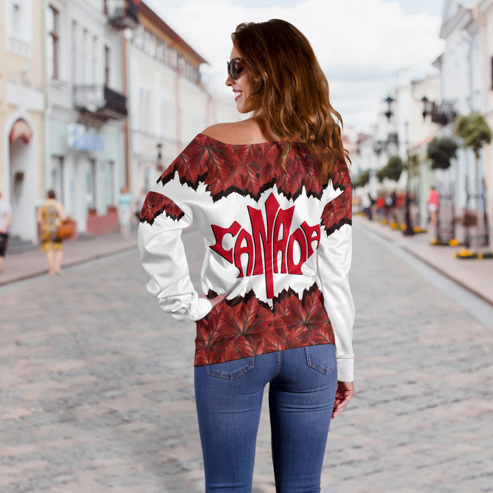 Canada Off Shoulder Sweatshirt Red Leaf Dominion