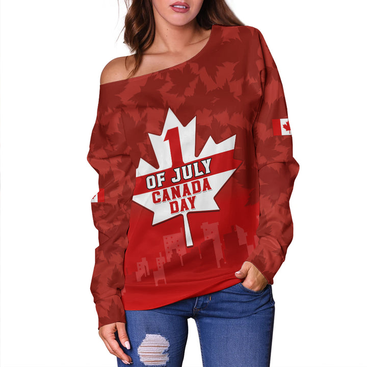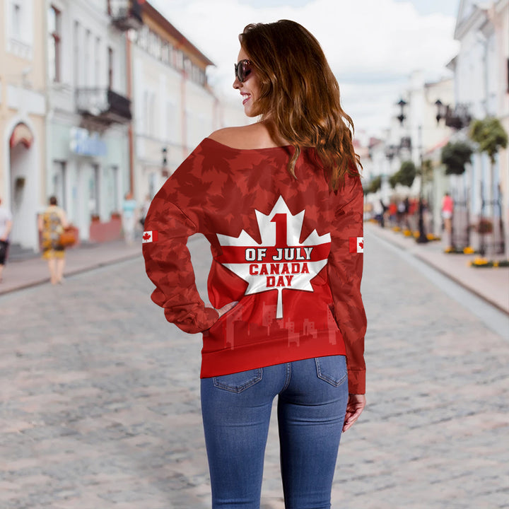 Canada Off Shoulder Sweatshirt Red Maple 1st July National Celebration