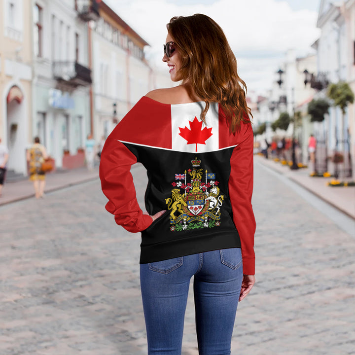 Canada Off Shoulder Sweatshirt Red North Classic Canadian Heritage Wear