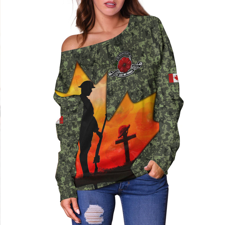 Canada Off Shoulder Sweatshirt Remembrance Day Honoring The Brave