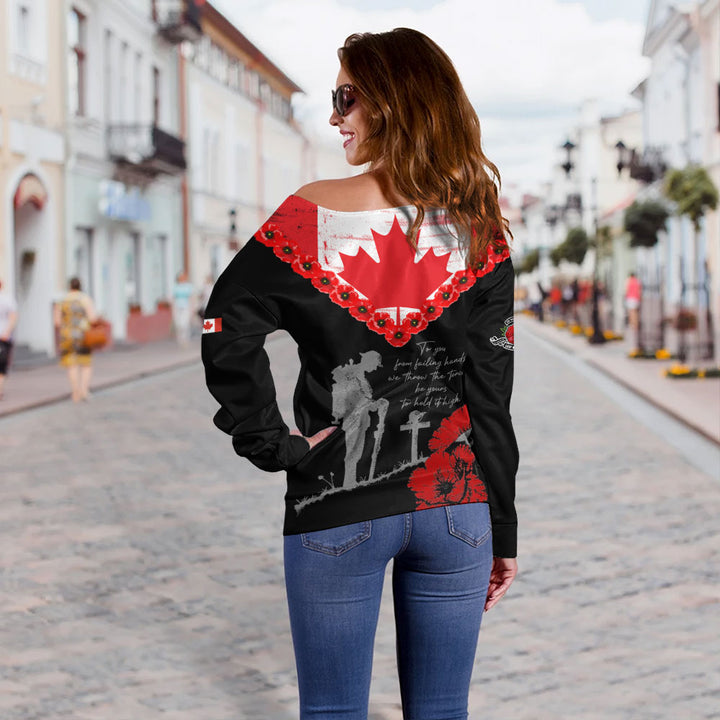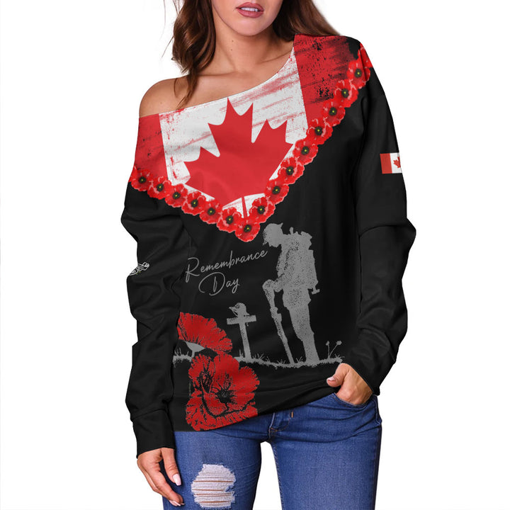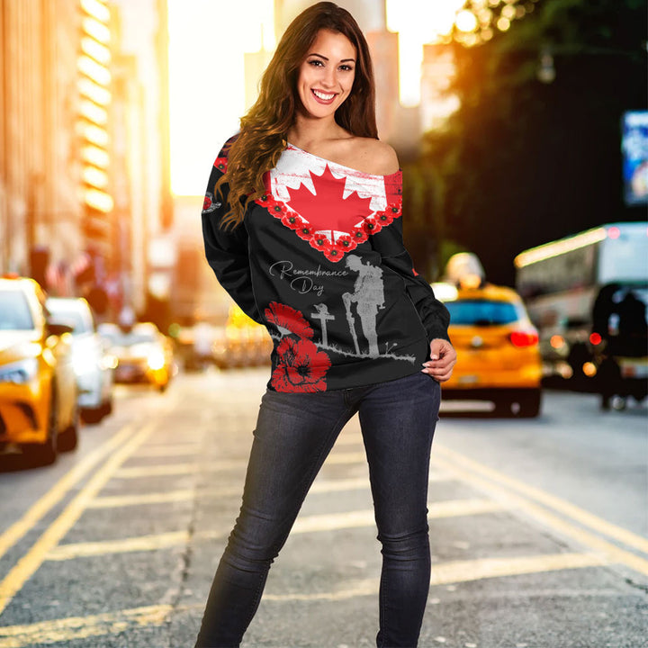 Canada Off Shoulder Sweatshirt Remembrance Day Maple Poppy Honor