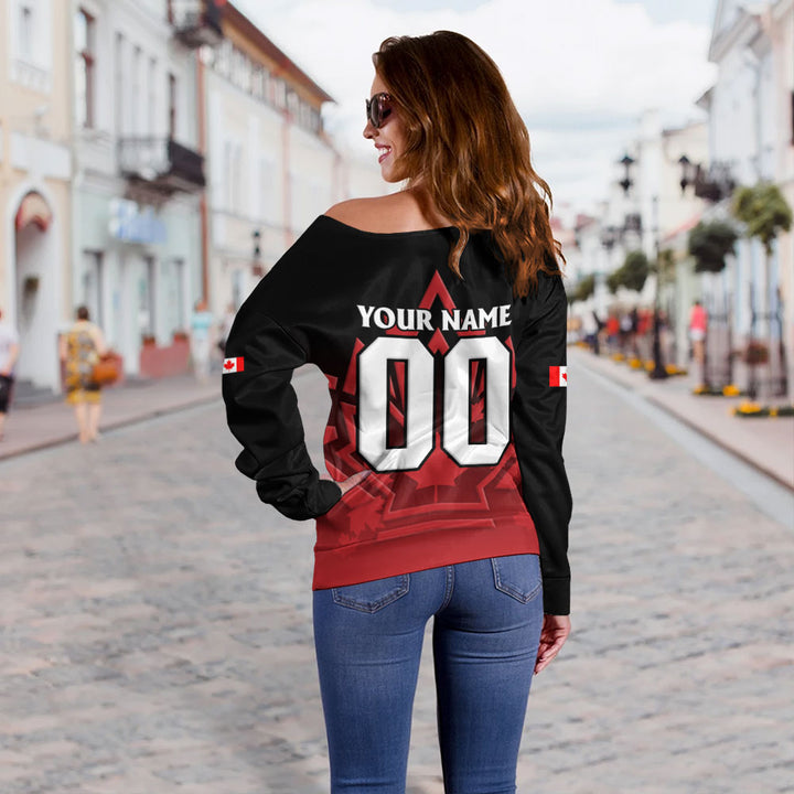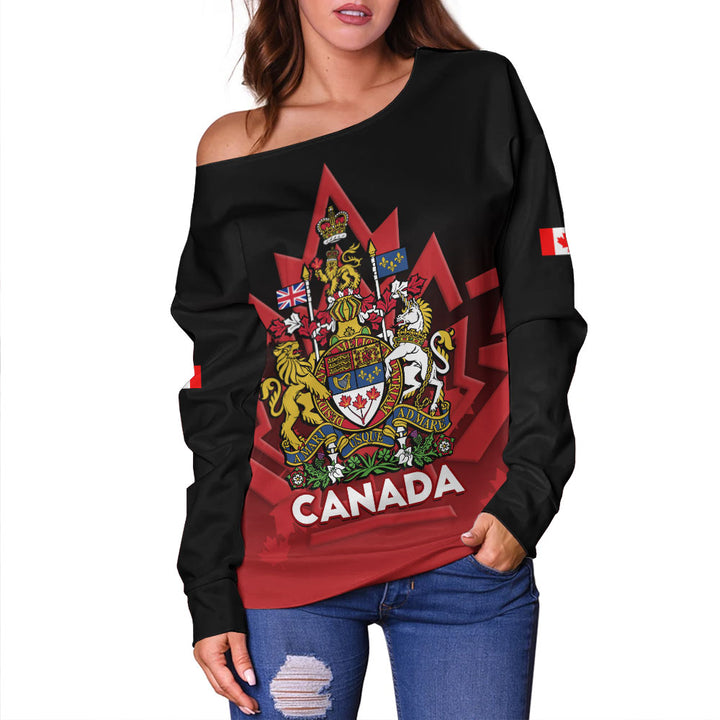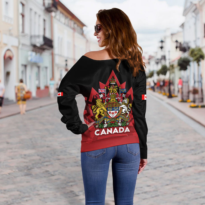 Canada Off Shoulder Sweatshirt Royal Red Black National Emblem Of Canada