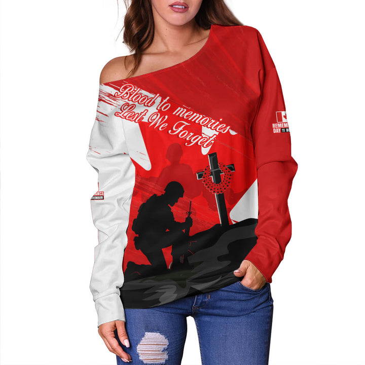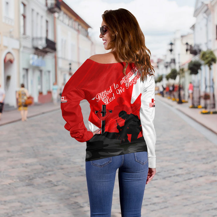 Canada Off Shoulder Sweatshirt Silhouettes Of Sacrifice Remembrance Day Tribute