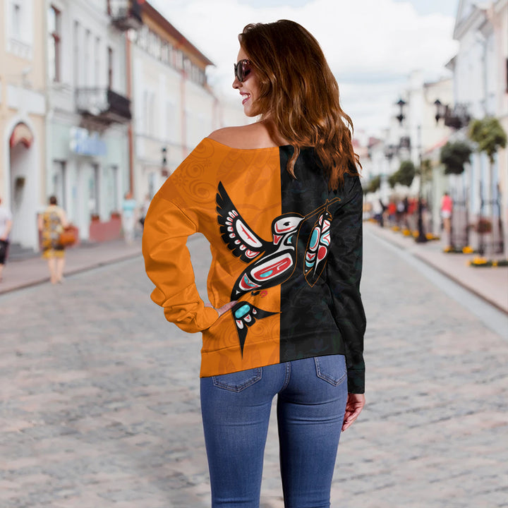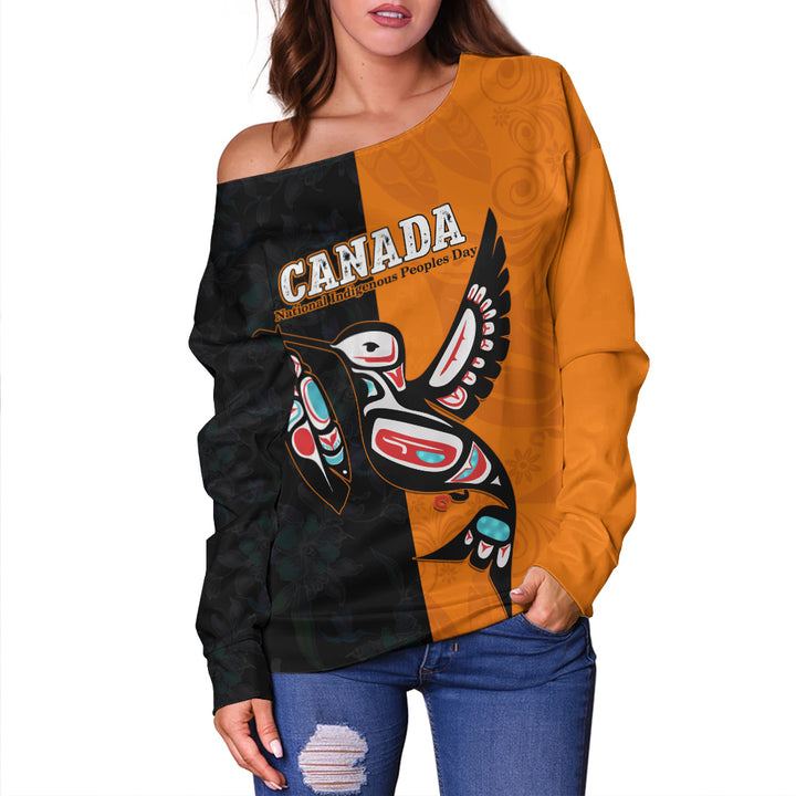 Canada Off Shoulder Sweatshirt Spirit Bird National Day Tribute