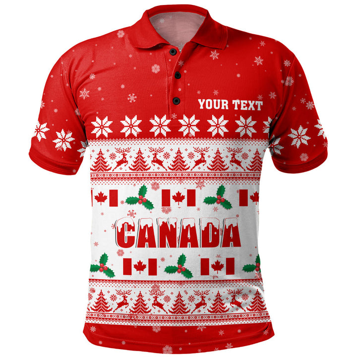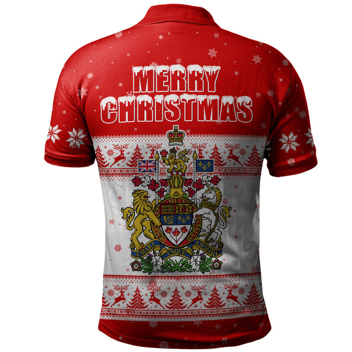 Canada Polo Shirt Christmas Knit Style Snowflake Reindeer