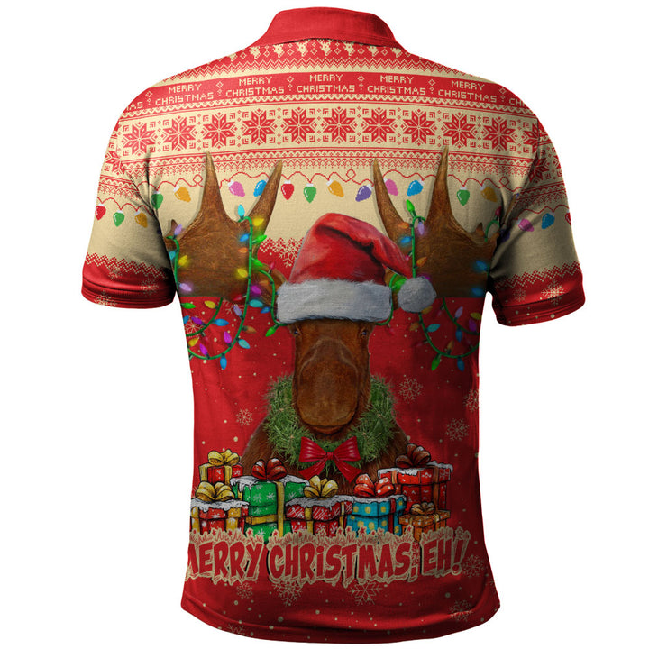 Canada Polo Shirt Xmas Moose Lights Celebration