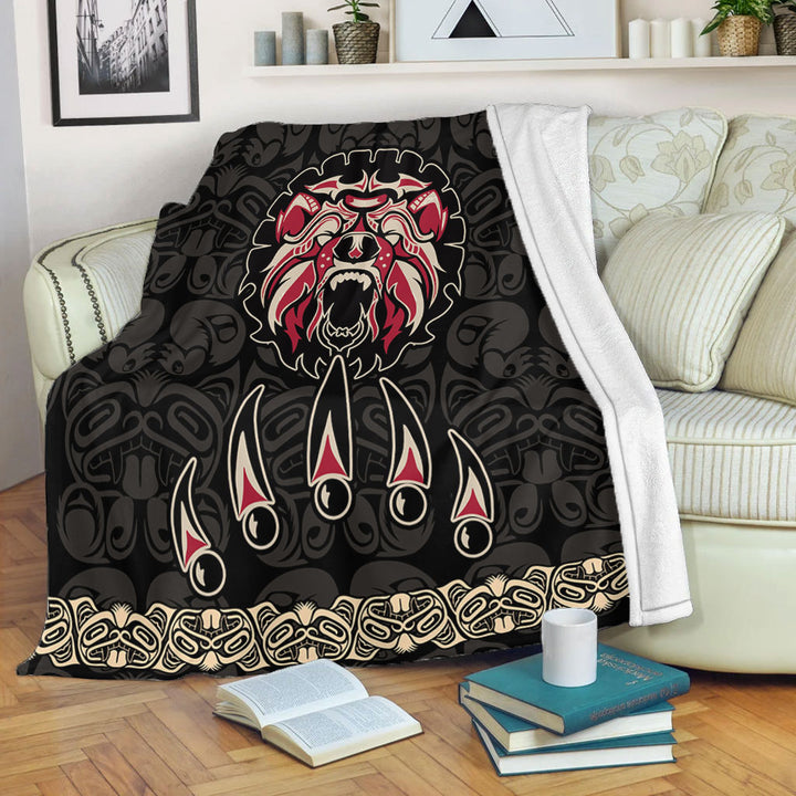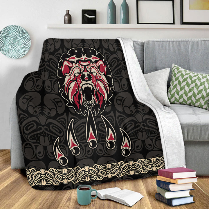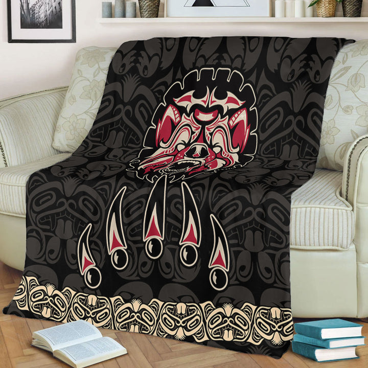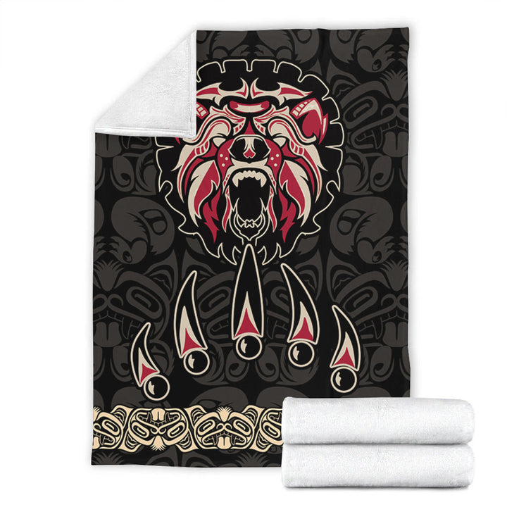 Canada Premium Blanket Haida Tribal Roaring Bear Pattern