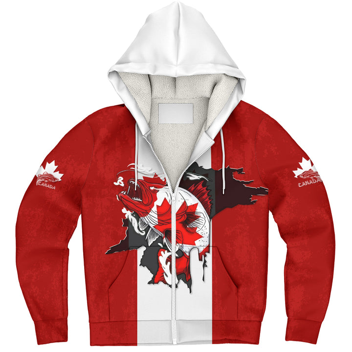 Canada Sherpa Hoodie Born To Fish Proud To Be Canadian