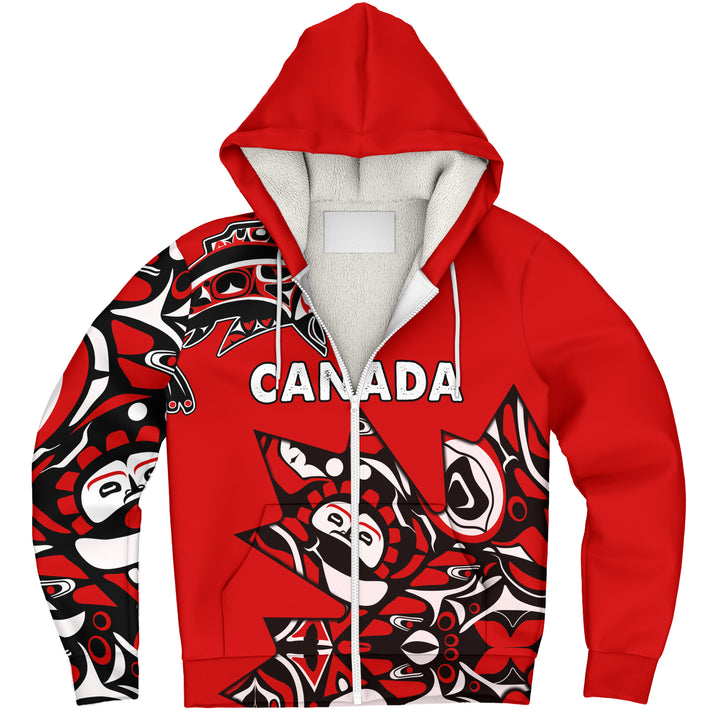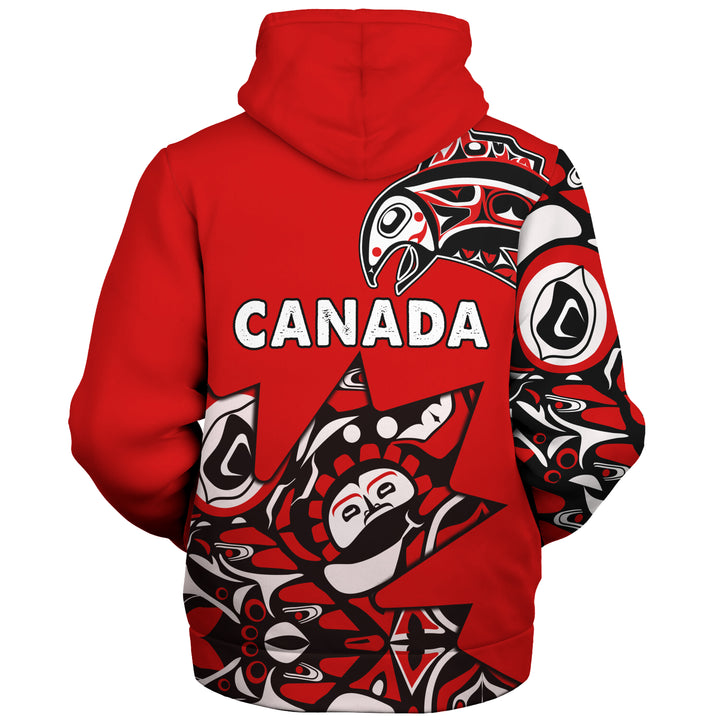 Canada Sherpa Hoodie Canada Maple Leafs Haida Spirit Pattern