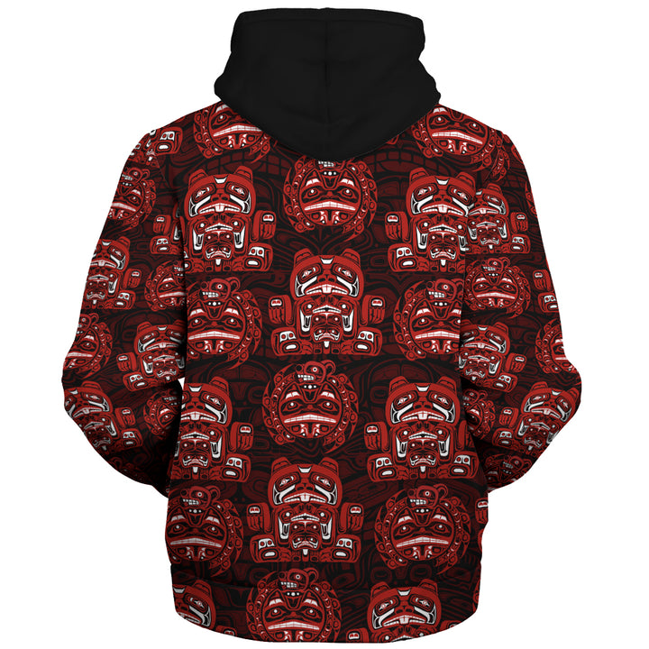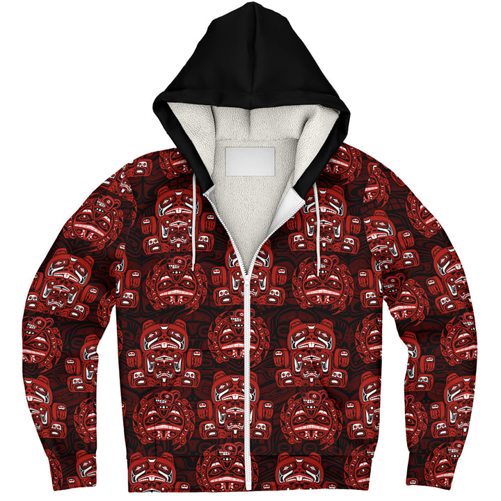 Canada Sherpa Hoodie Haida Spirit Face Totem Repeat Print