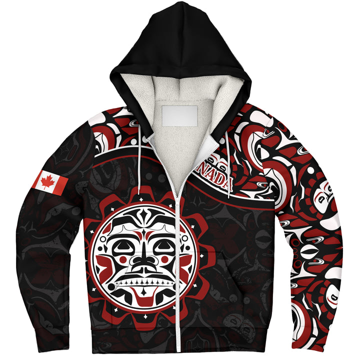 - With high-tech graphic prints on sherpa hoodies, vibrant designs and colors make its entire look modern and chic.