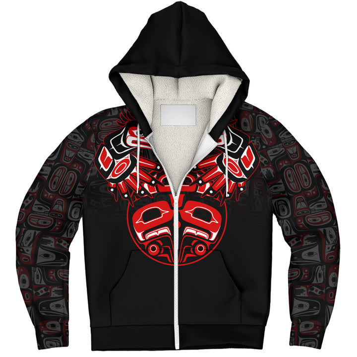 - With high-tech graphic prints on sherpa hoodies, vibrant designs and colors make its entire look modern and chic.