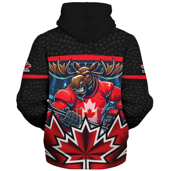 Canada Sherpa Hoodie Maple Moose Hockey Warrior