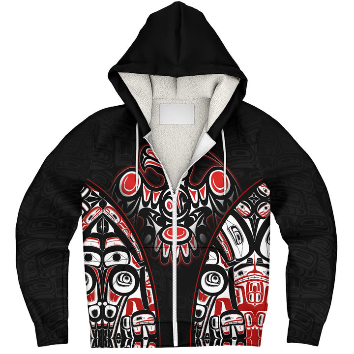 Canada Sherpa Hoodie Thunderbird Totem Legacy Black And Red Power