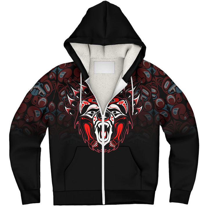 Canada Sherpa Hoodie Tribal Bear Awakening
