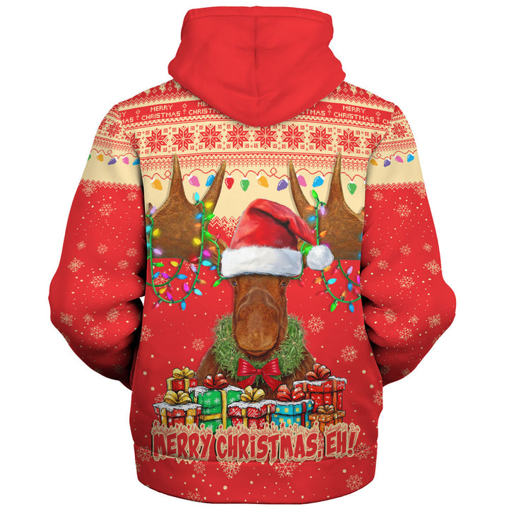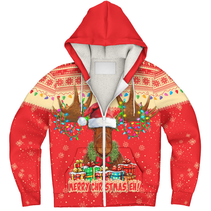 Canada Sherpa Hoodie Xmas Moose Lights Celebration