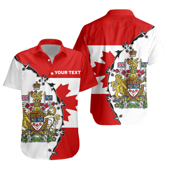 Canada Short Sleeve Shirt Coat Of Arms Unity Zipper Style