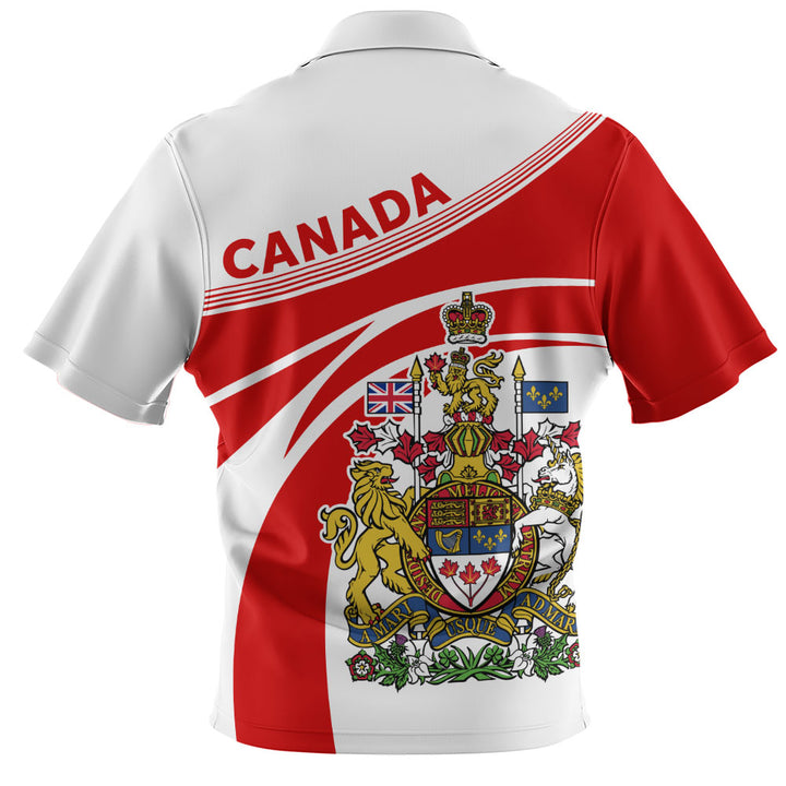 Canada Zip Polo Shirt Canada Coat Of Arms Glory Royal Design