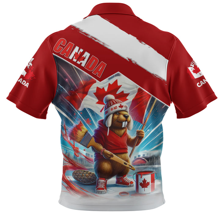 Canada Zip Polo Shirt Canada Day Beaver Pride Edition