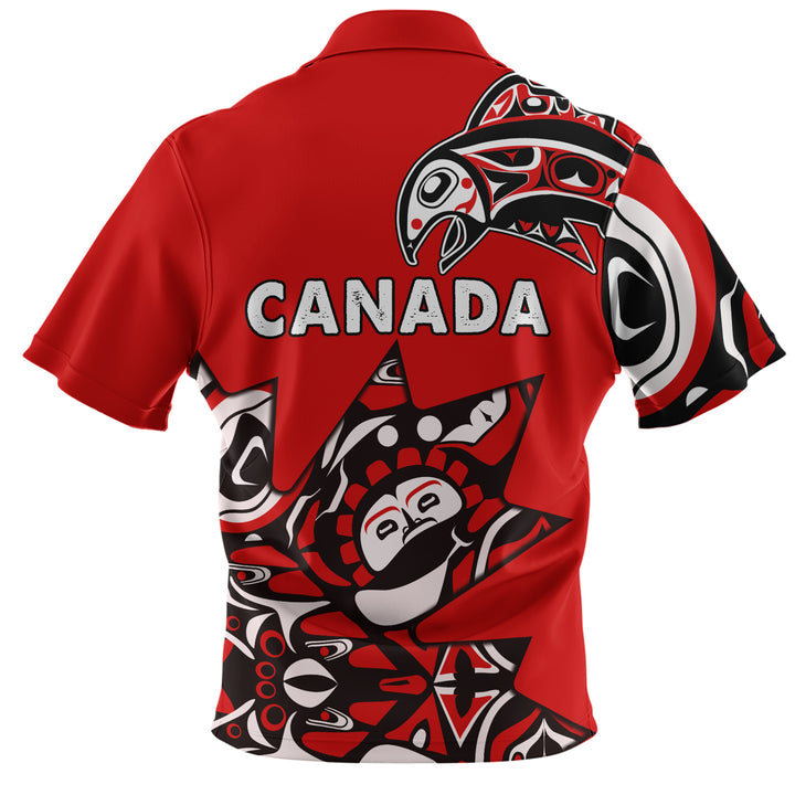 Canada Zip Polo Shirt Canada Maple Leafs Haida Spirit Pattern