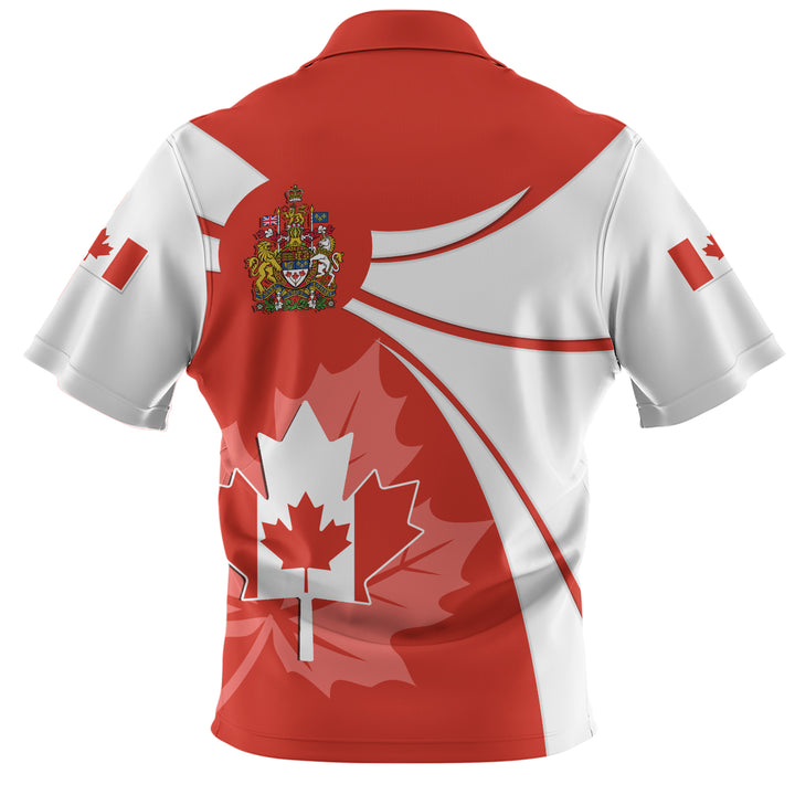 Canada Zip Polo Shirt Canada Maple Wave Design