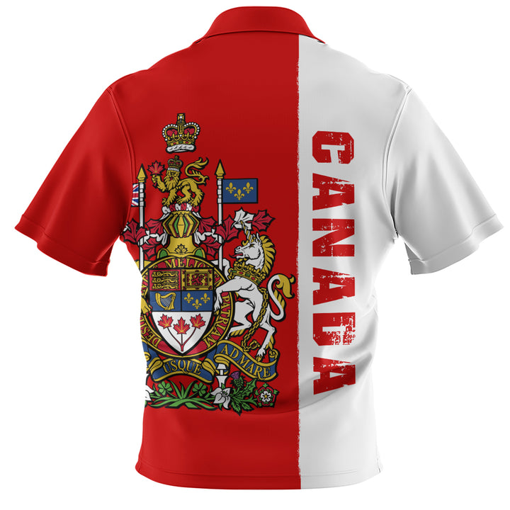 Canada Zip Polo Shirt Clawed Flag True North Strong