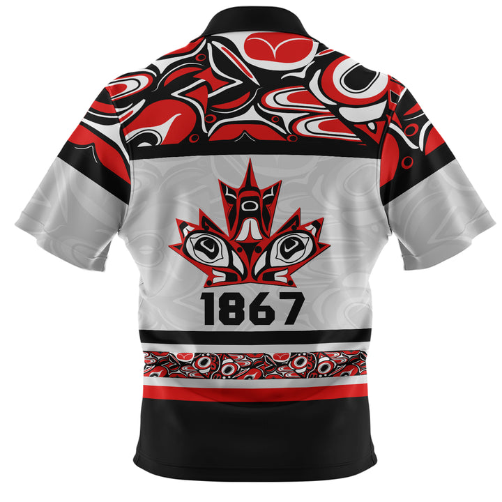 Canada Zip Polo Shirt Haida Indigenous Maple Legacy 1867