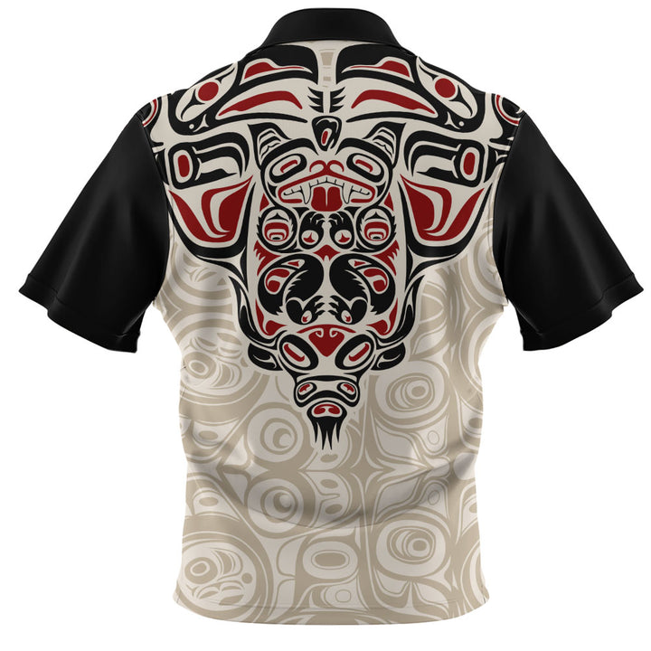 Canada Zip Polo Shirt Haida Thunderbird Tribal Spirit Design