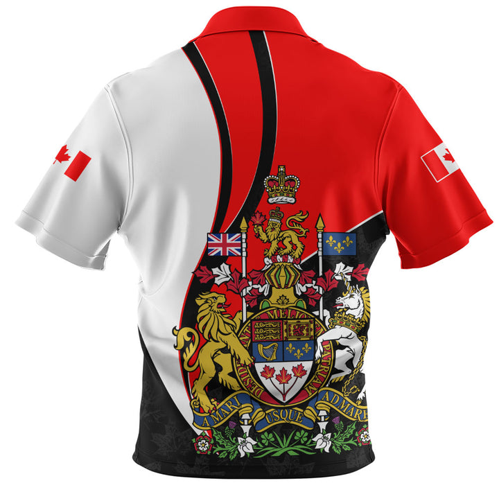 Canada Zip Polo Shirt Maple Crown Crest With National Pride