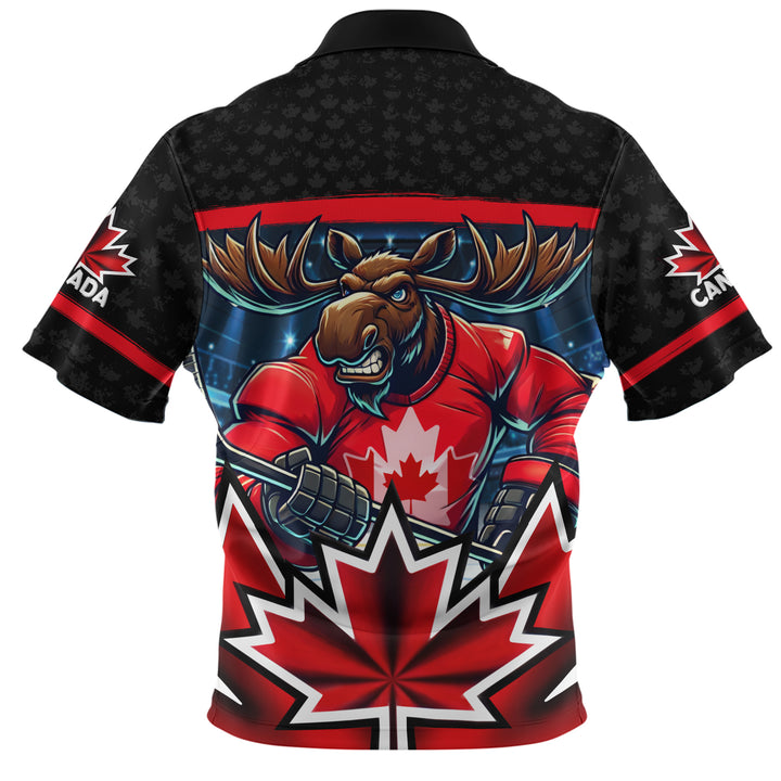 Canada Zip Polo Shirt Maple Moose Hockey Warrior
