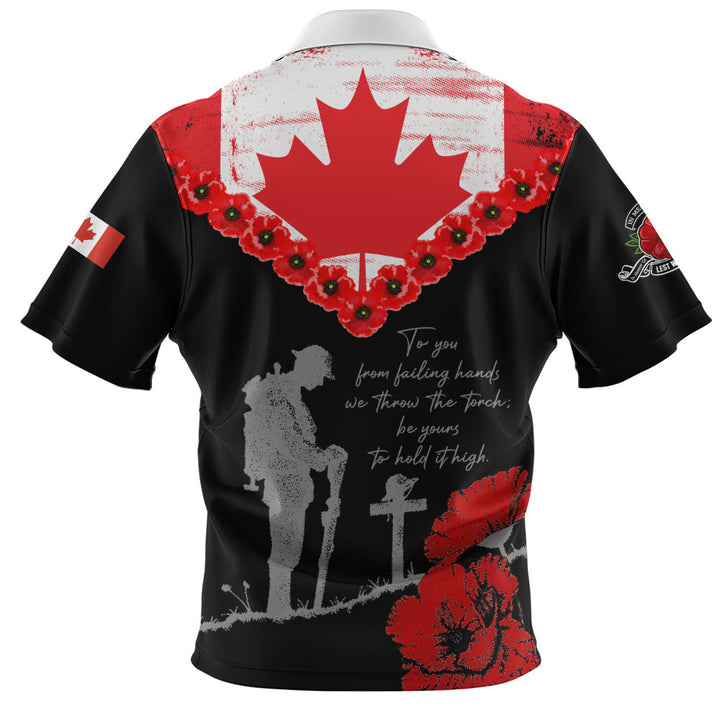 Canada Zip Polo Shirt Remembrance Day Maple Poppy Honor