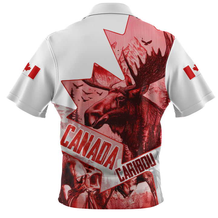 Canada Zip Polo Shirt The Red Wild Caribou Heritage