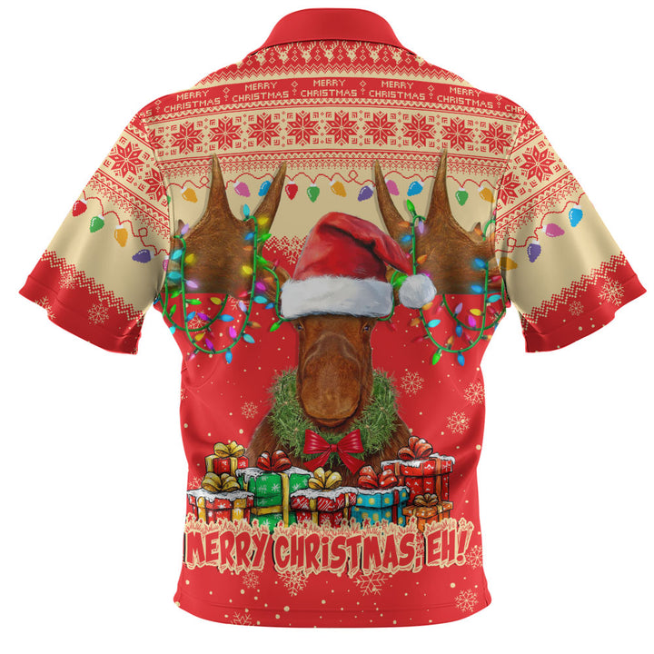 Canada Zip Polo Shirt Xmas Moose Lights Celebration