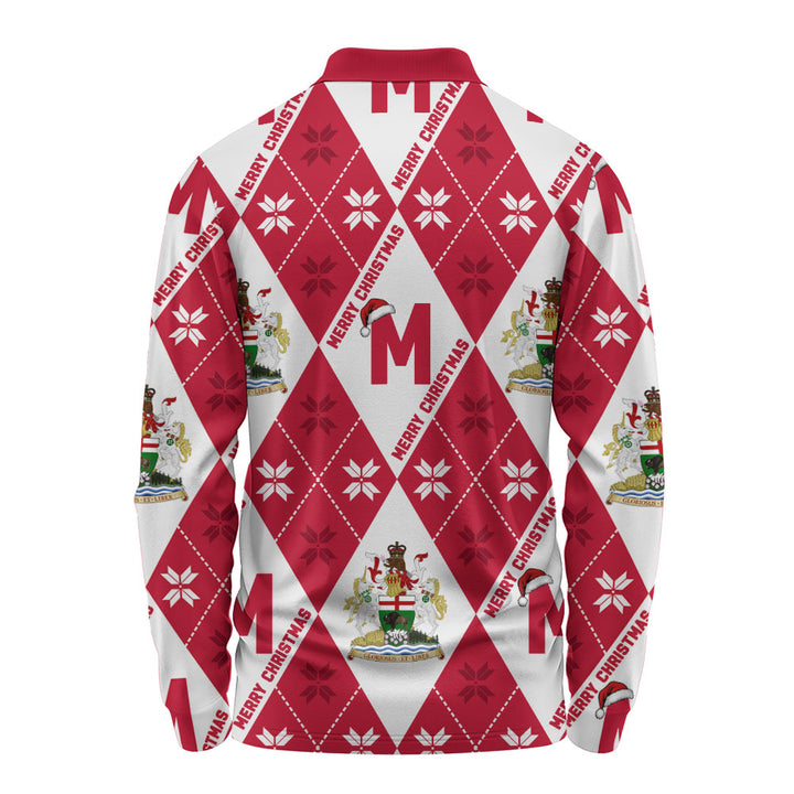 Manitoba Long Sleeve Polo Shirt Christmas Argyle Pattern With Royal Crest