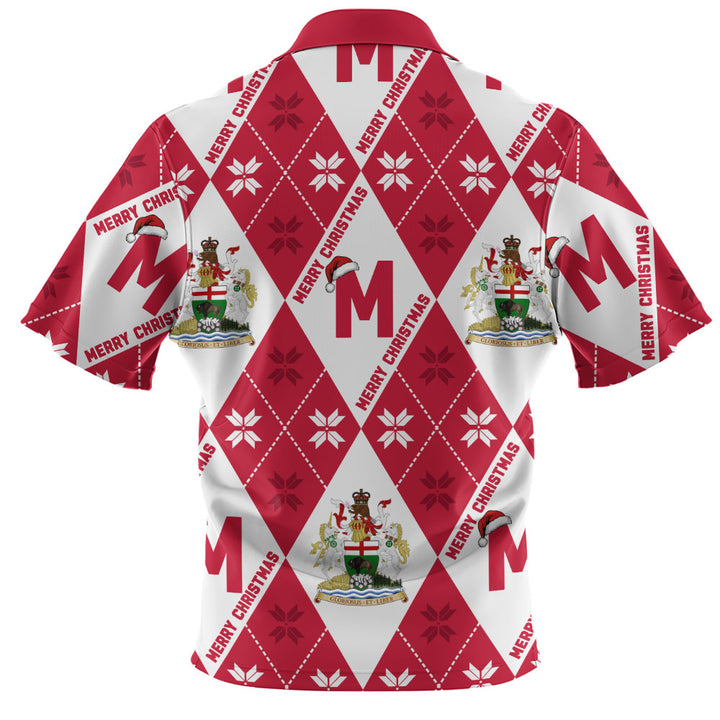 Manitoba Zip Polo Shirt Christmas Argyle Pattern With Royal Crest