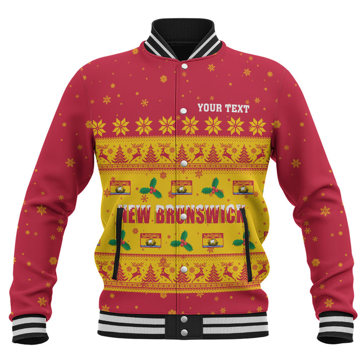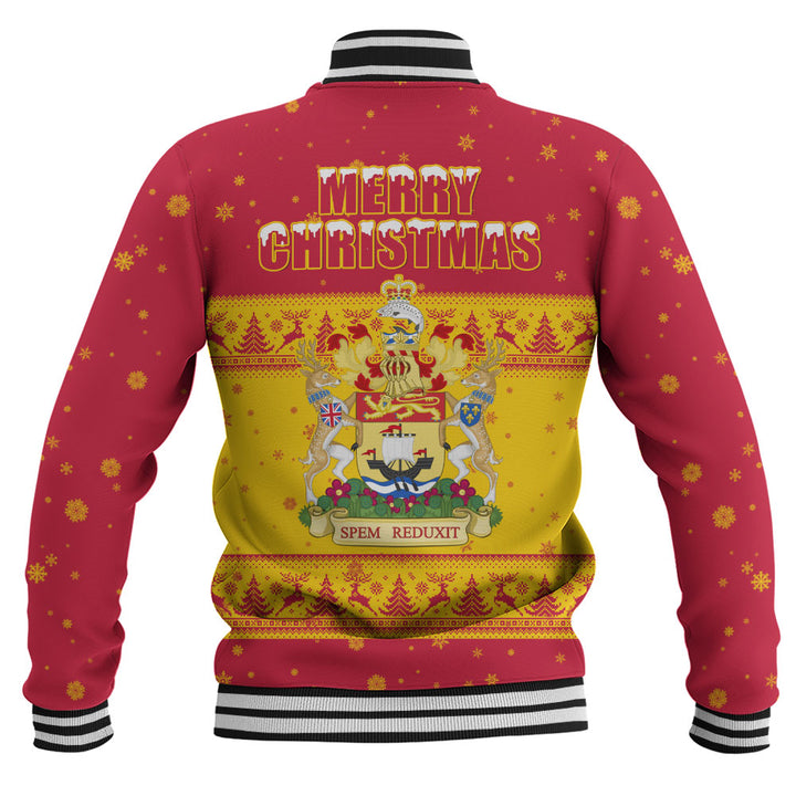 New Brunswick Baseball Jacket Christmas Knit Style Snowflake Reindeer