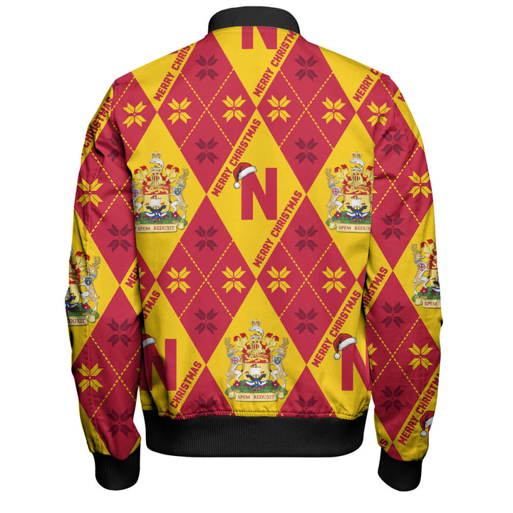 New Brunswick Bomber Jacket Christmas Argyle Pattern With Royal Crest